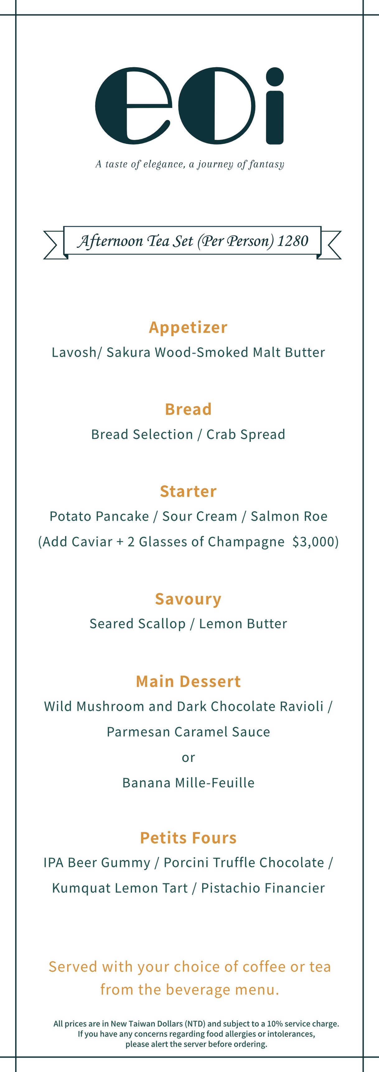 Afternoon Tea: 3:00 PM – 5:00 PM