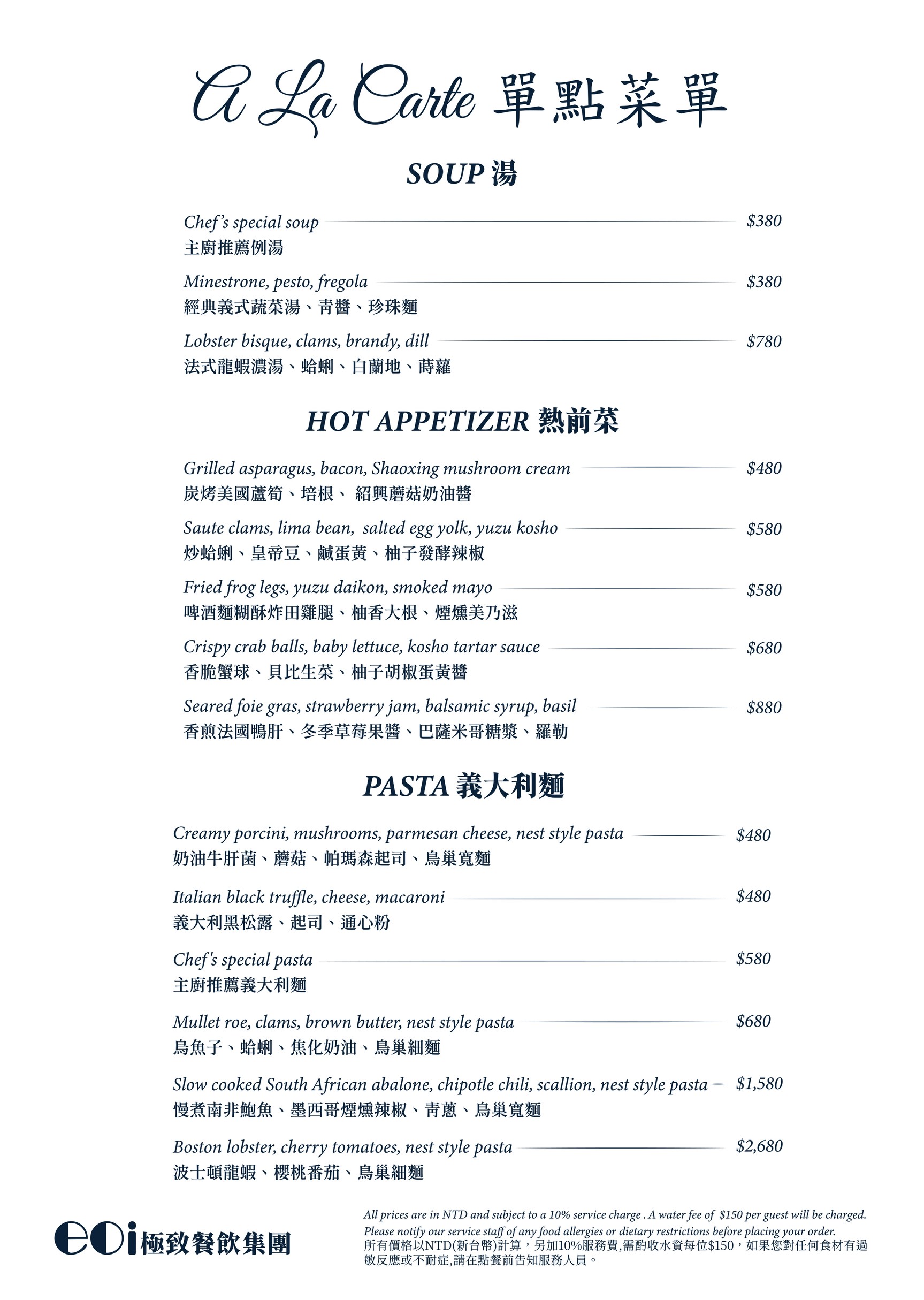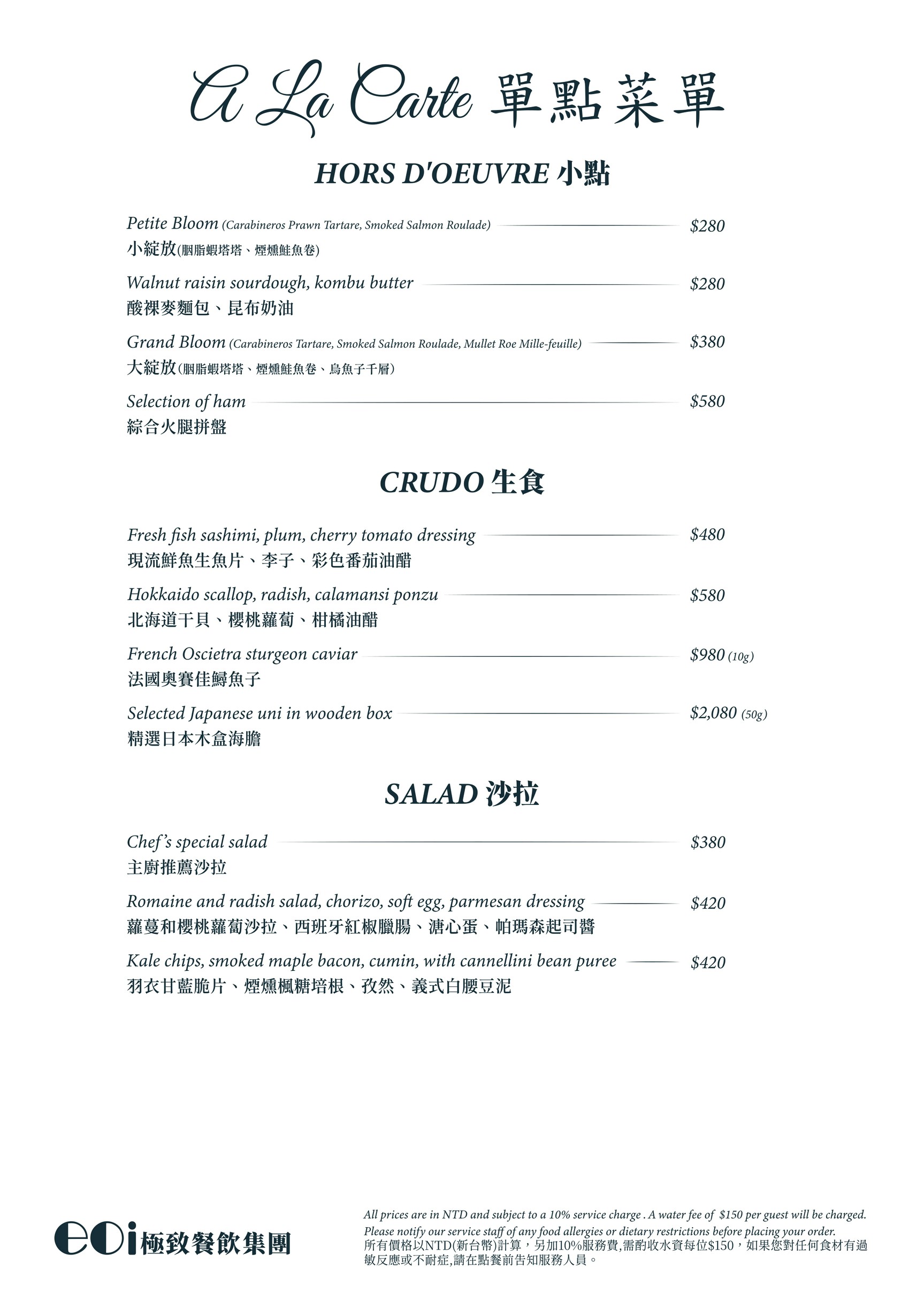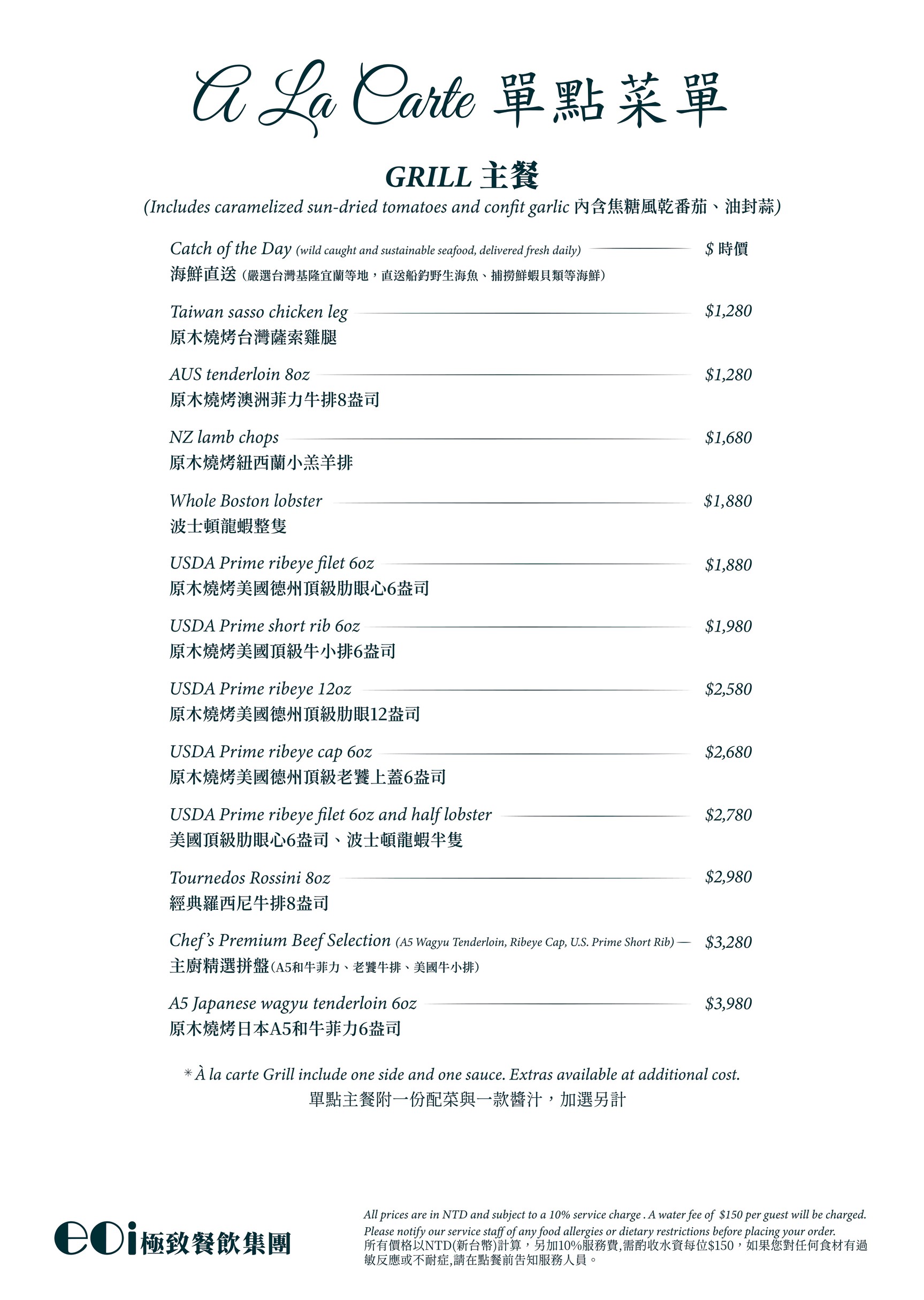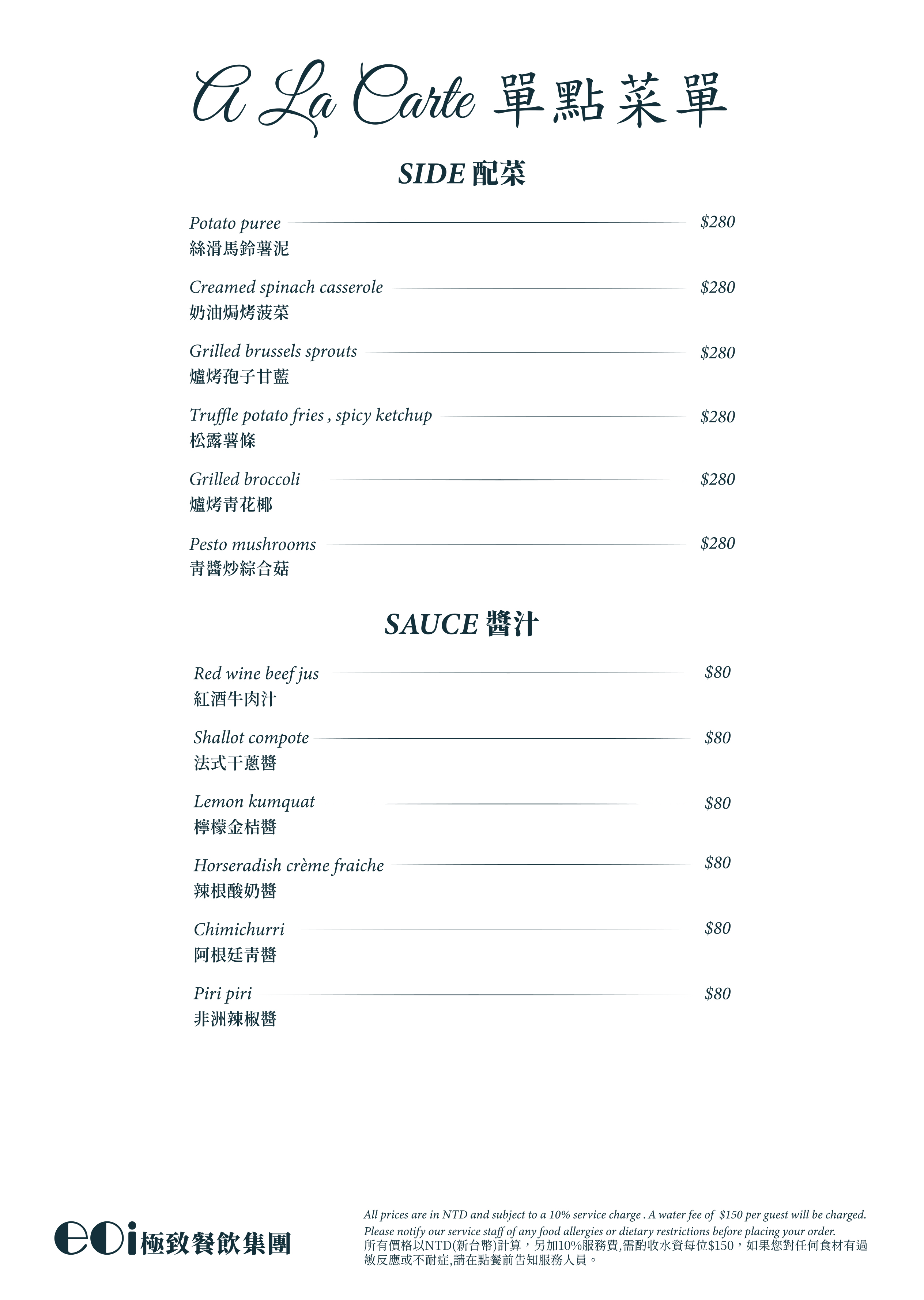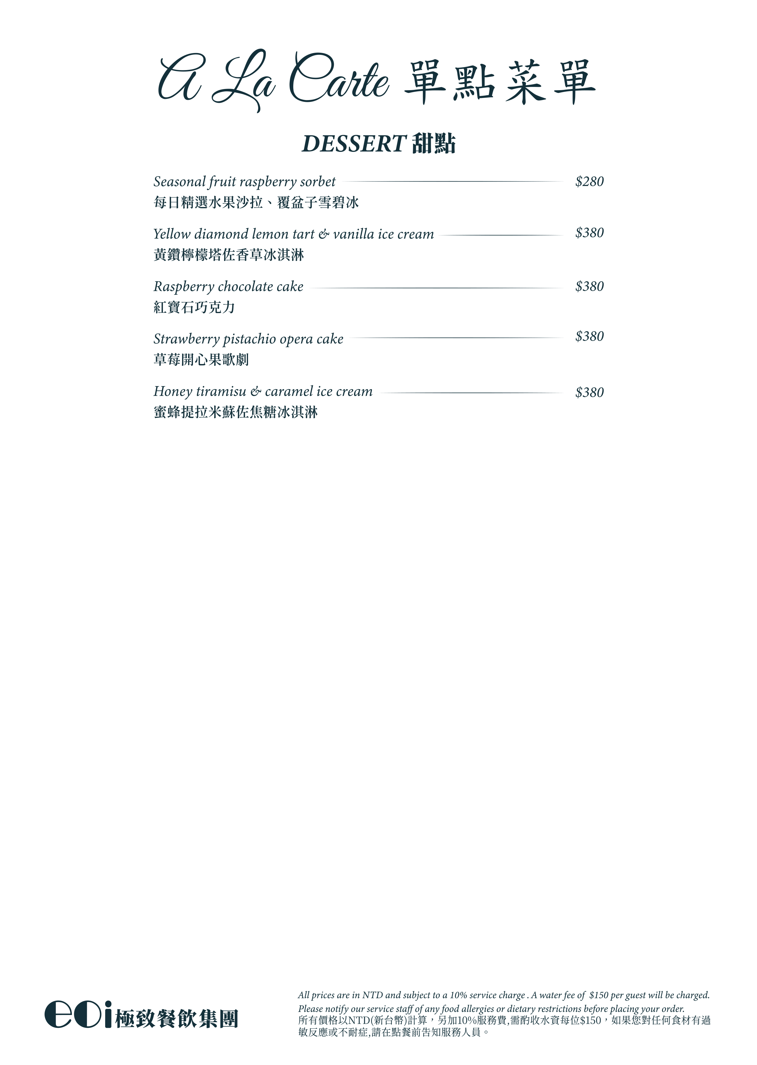 13 歲以上:午餐NT$1,000 / 人;晚餐NT$1,500 /人